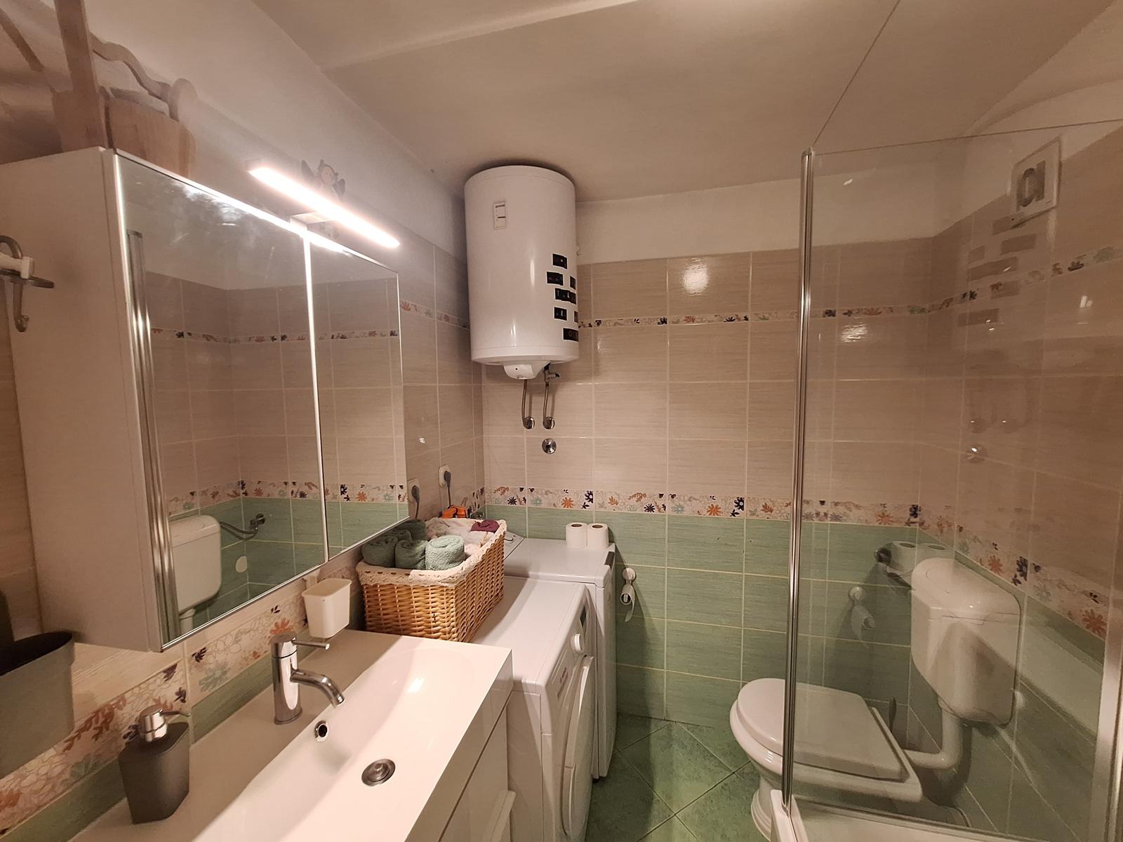 Byt o rozloze 70 m2 , obývací pokoj s kuchyní +ložnice. Apartmán má plně vybavenou kuchyň s myčkou nádobí, TV, wi-fi, pračka a sušička, koupelna, wc. Vybavení zahrnuje také lednici, varnou desku, sporák, rychlovarnou konvici a kávovar.